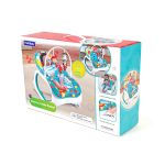 Do produktu dołączony jest pałąk z zabawkami, którymi dziecko może się bawić. W opakowaniu figurki zebry oraz sympatycznej małpki. Bujaczek posiada funkcje odtwarzania radosnej muzyki (6 melodii) oraz wibracje. Obie funkcje można włączyć za pomocą łatwo dostępnych guzików znajdujących się na froncie. Bujaczek to doskonała forma zabawy dla maluszka, a dla rodzica chwila wytchnienia i możliwość zajęcia się innymi sprawami, mając jednak cały czas wgląd na dziecko.