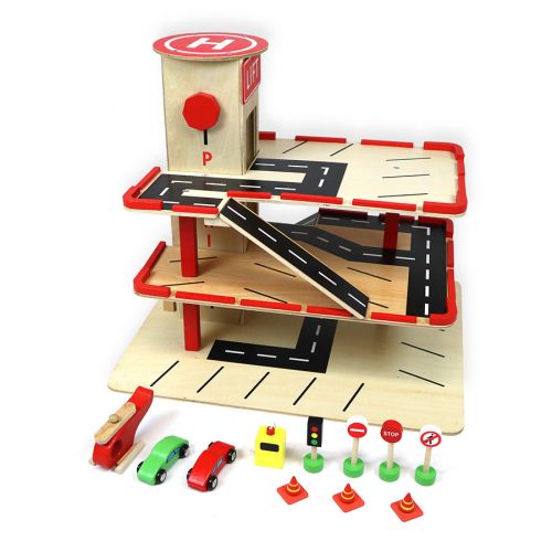 | W skład zestawu wchodzi: | parking z windą, 2 samochodziki, 1 helikopter, 4 znaki drogowe, 3 pachołki, dystrybutor paliwa |