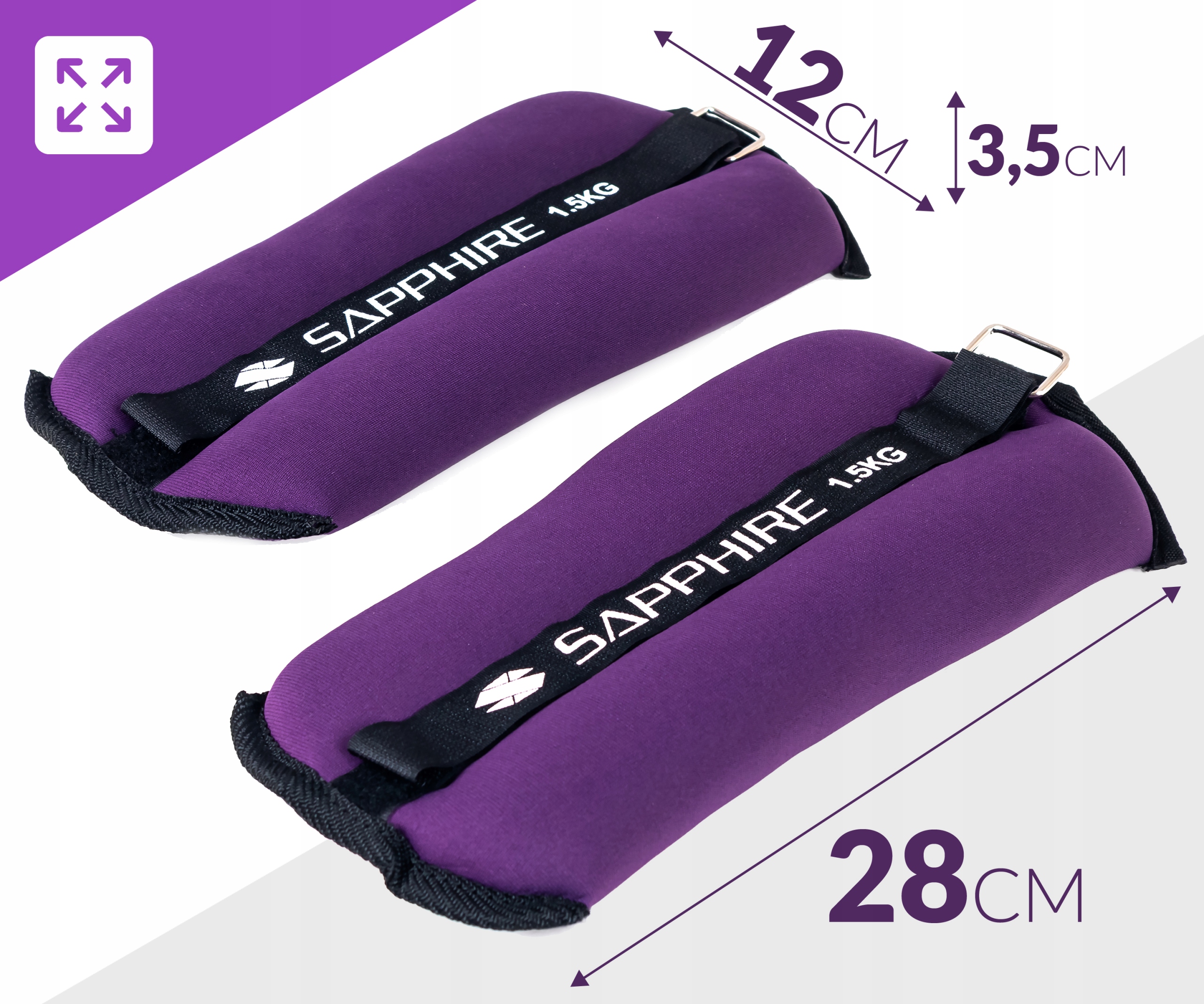 Obciążniki na rzep Sapphire o wadze 2x1,5kg przeznaczone są do ćwiczeń w warunkach domowych i na zewnątrz. Doskonale spisują się podczas sesji aerobiku oraz treningów fitness. Regulowany rzep pozwala na dopasowanie obciążników do nadgarstków i kostek.