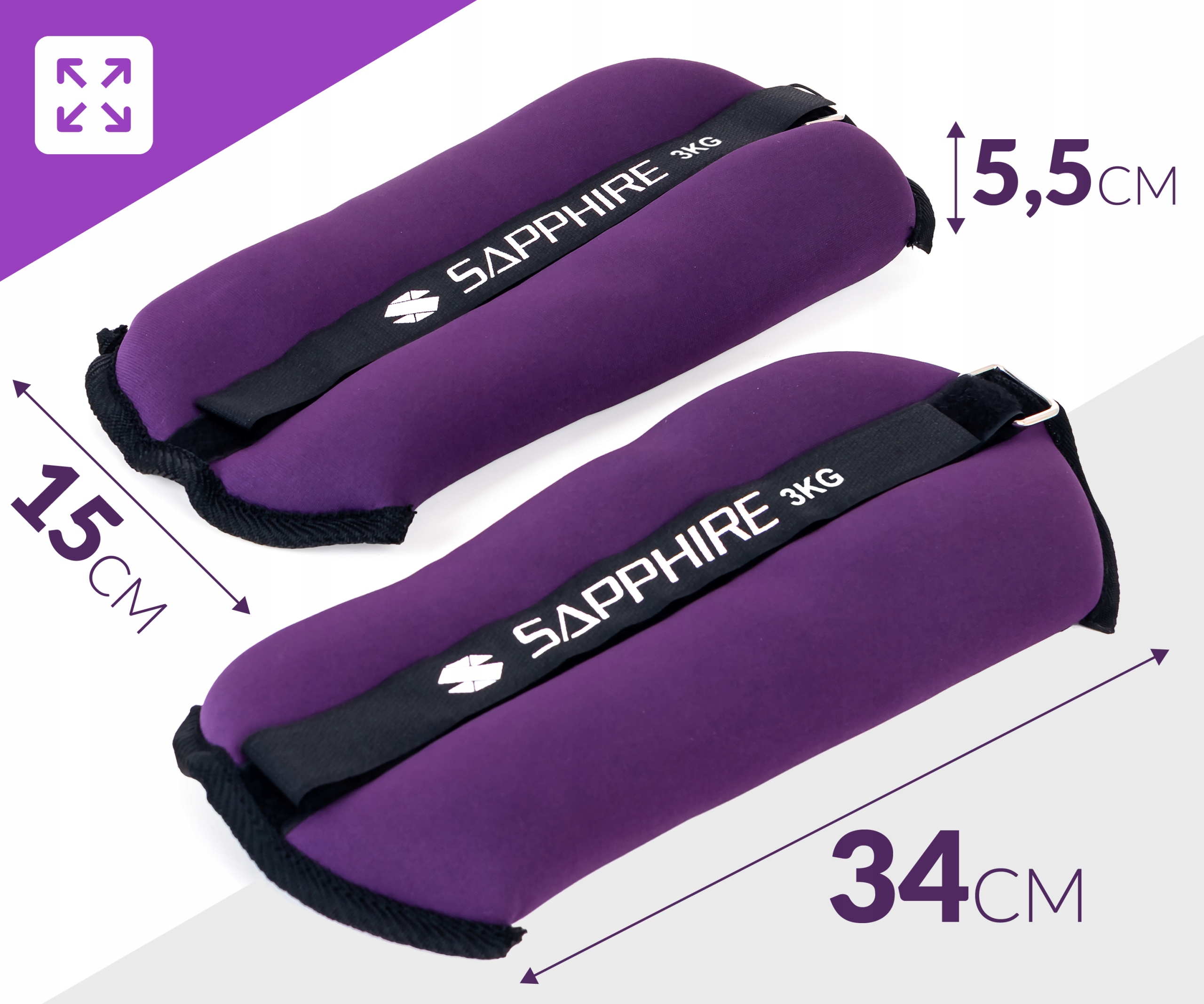 Obciążniki na rzep Sapphire o wadze 2x3kg przeznaczone są do ćwiczeń w warunkach domowych i na zewnątrz. Doskonale spisują się podczas sesji aerobiku oraz treningów fitness. Regulowany rzep pozwala na dopasowanie obciążników do nadgarstków i kostek.