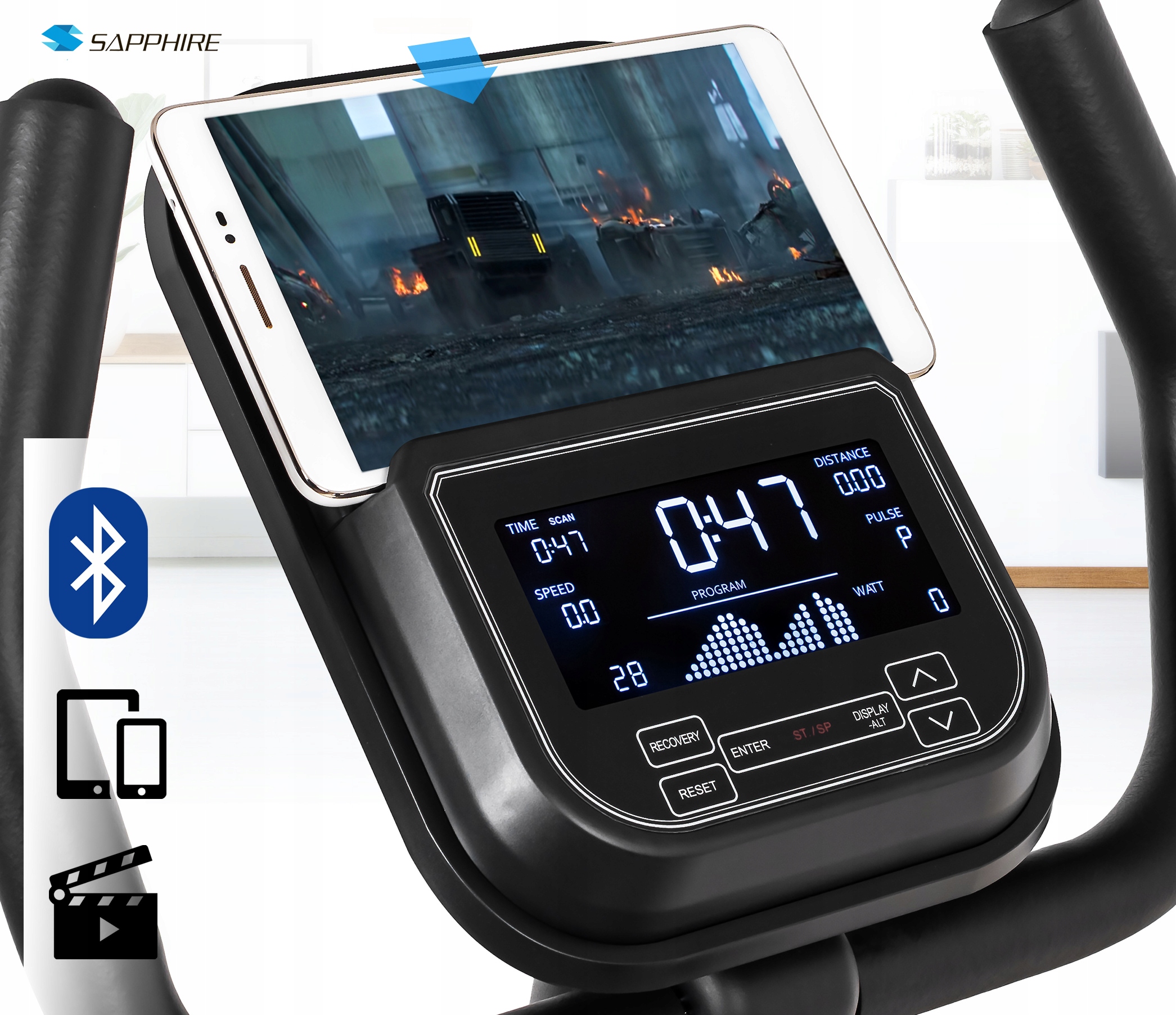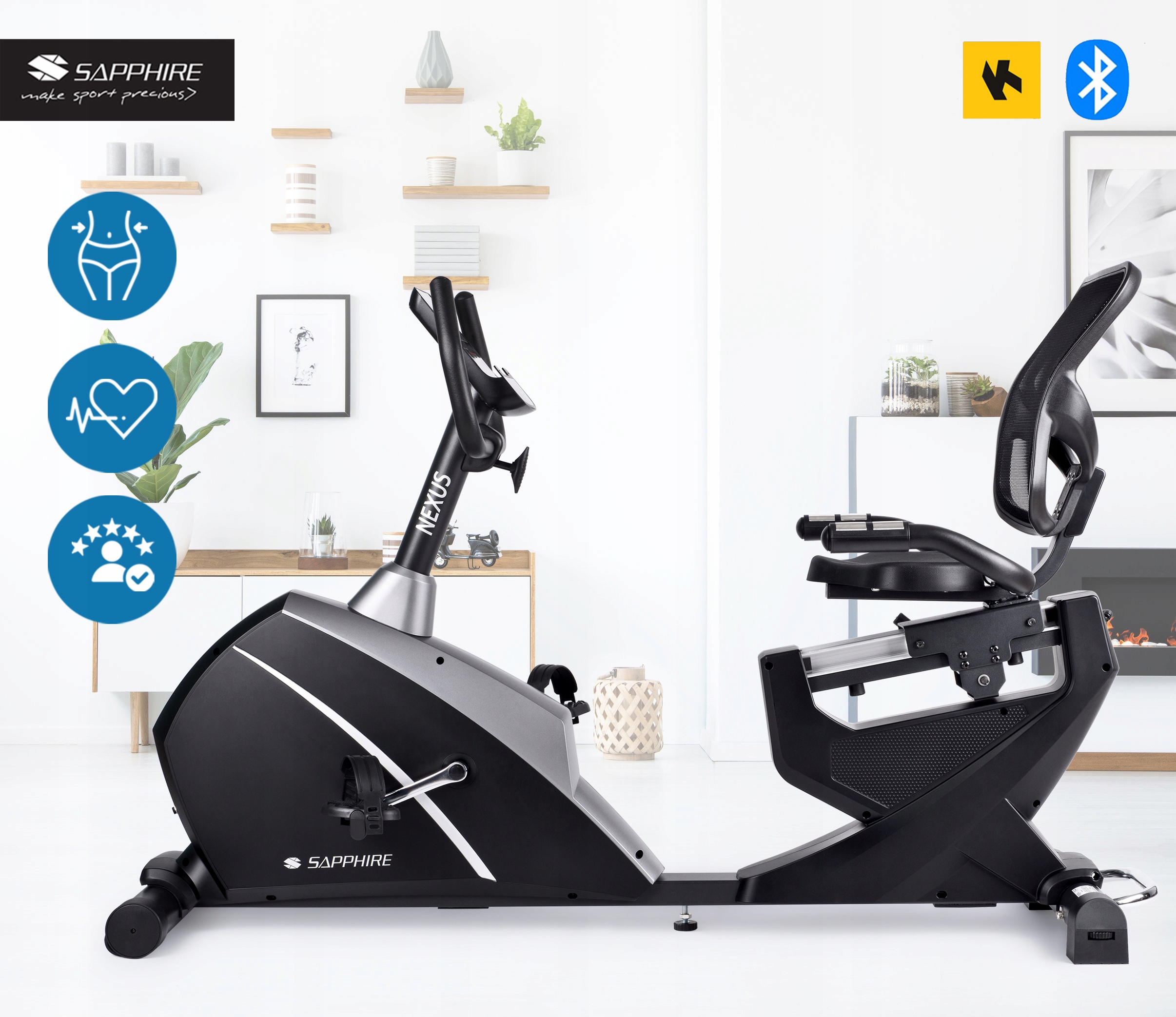 Rower elektromagnetyczny poziomy Sapphire SG-8050RB NEXUS Aplikacje Bluetooth