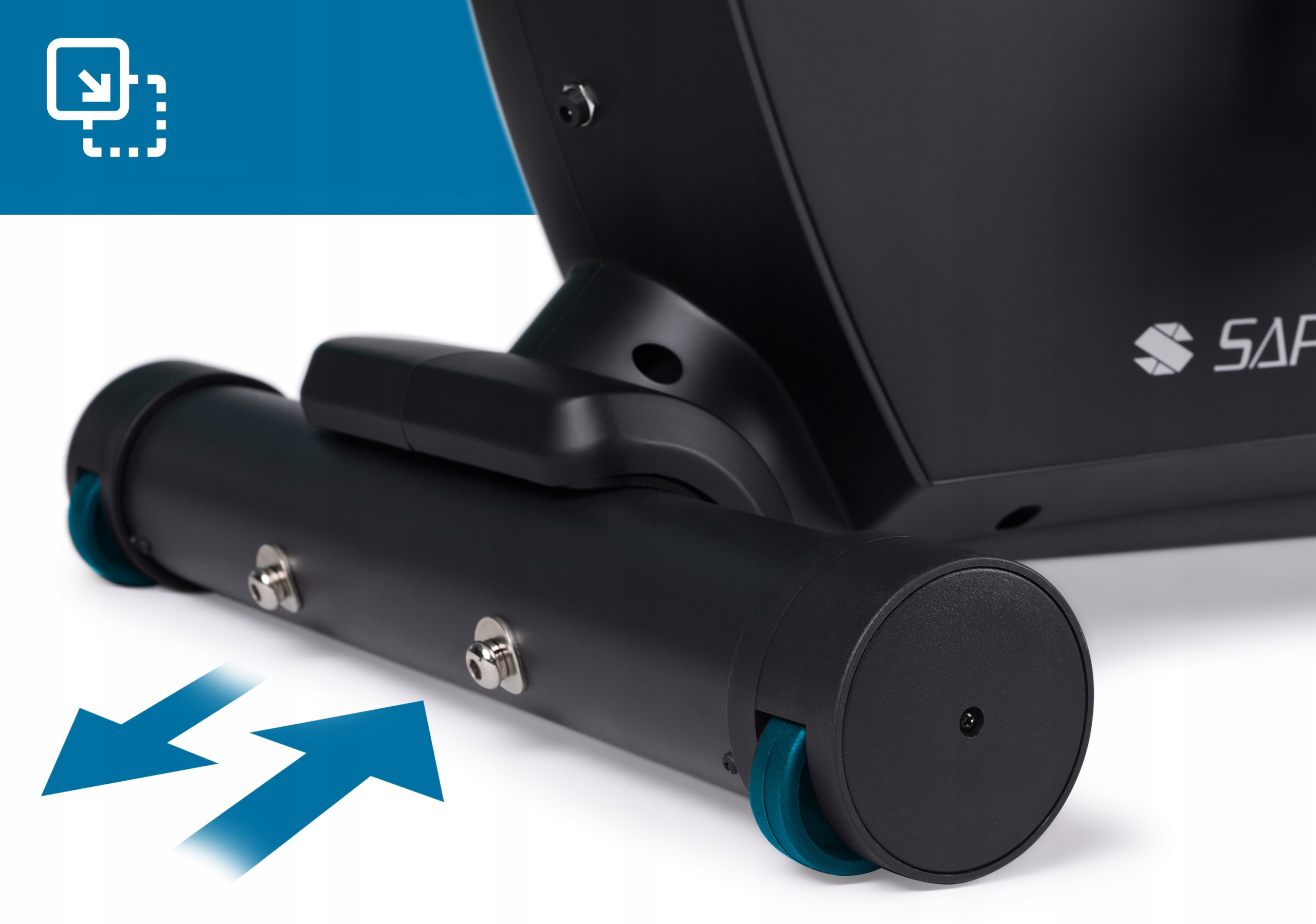 - Dzięki dużej wadze urządzenie jest stabilne i bezpieczne nawet podczas najbardziej wymagających treningów. Zdajemy sobie jednak sprawę, że czasem będą Państwo chcieli przemieścić sprzęt - niezwykłym udogodnieniem będą wówczas kółka transportowe wbudowane w przedni stabilizator.