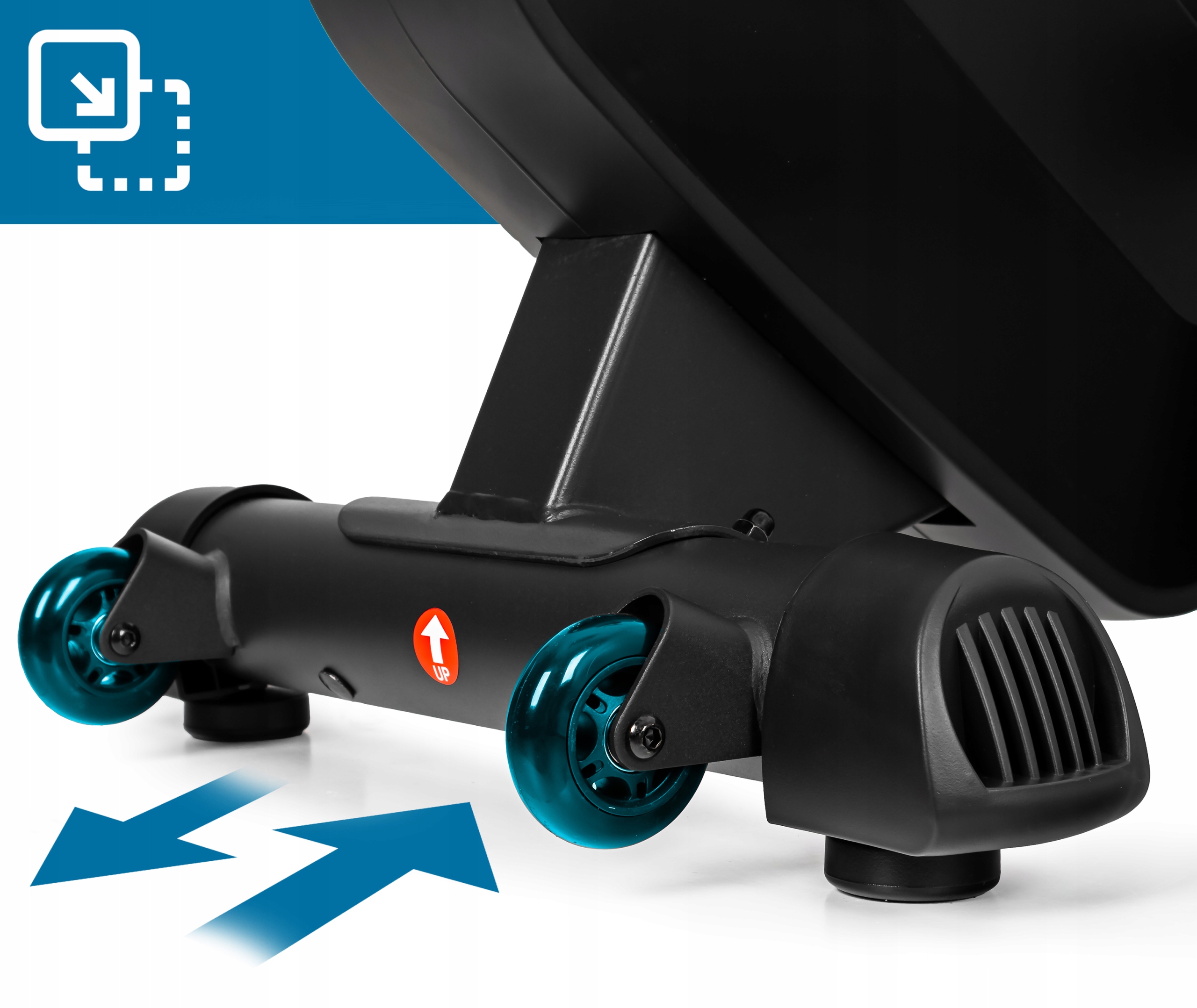 - Dzięki dużej wadze urządzenie jest stabilne i bezpieczne nawet podczas najbardziej wymagających treningów. Zdajemy sobie jednak sprawę, że czasem będą Państwo chcieli przemieścić sprzęt - niezwykłym udogodnieniem będą wówczas kółka transportowe wbudowane w przedni stabilizator oraz uchwyt znajdujący się z tyłu urządzenia
