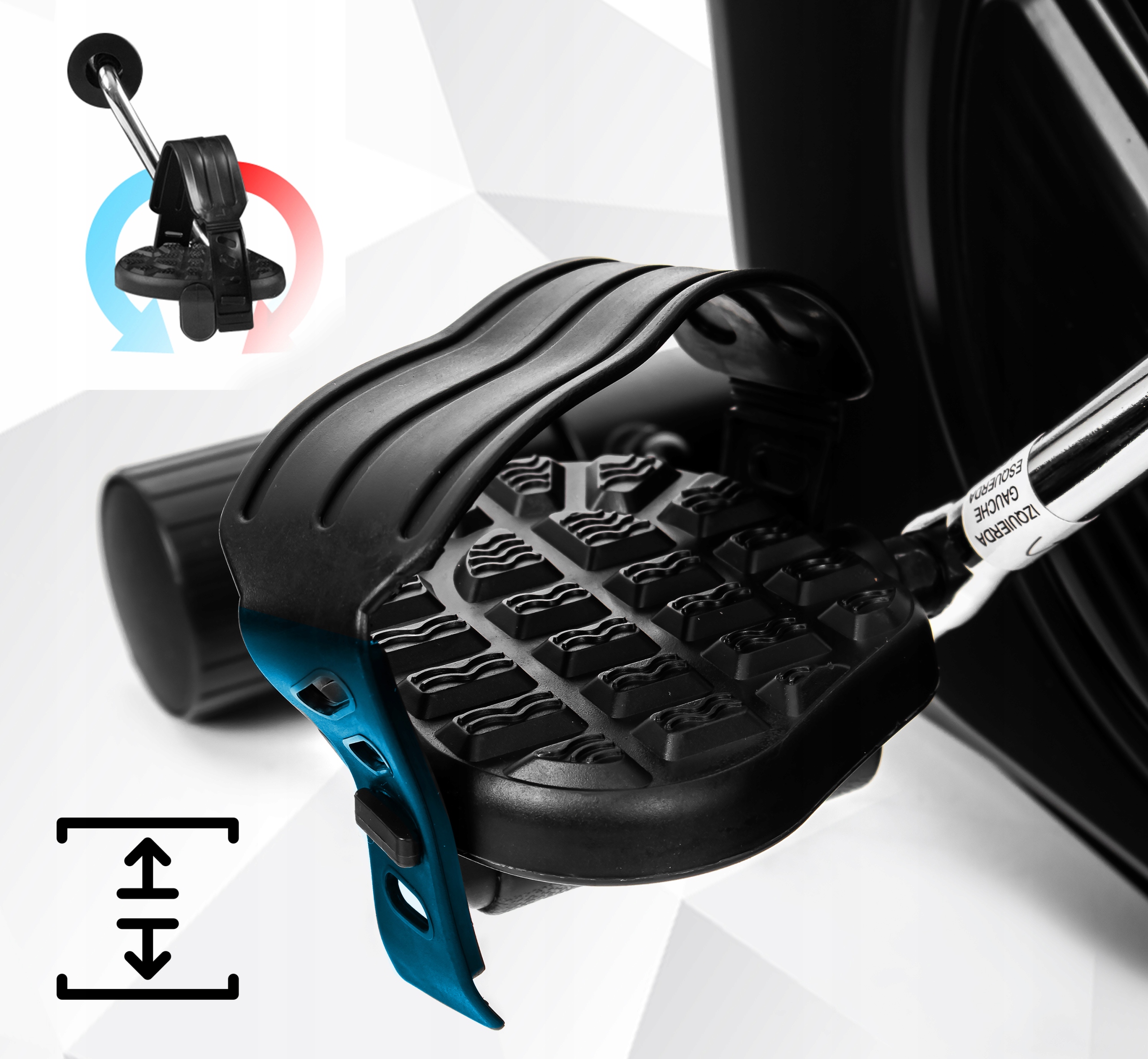 - Stabilne podparcie dla stóp ma zasadniczy wpływ nie tylko na komfort ćwiczenia, ale przede wszystkim na jego efektywność. W naszym rowerze zastosowano pedały z równomiernym, antypoślizgowym rozłożeniem punktów nacisku stopy, tak aby ćwiczenie stało się jeszcze bardziej przyjemne.