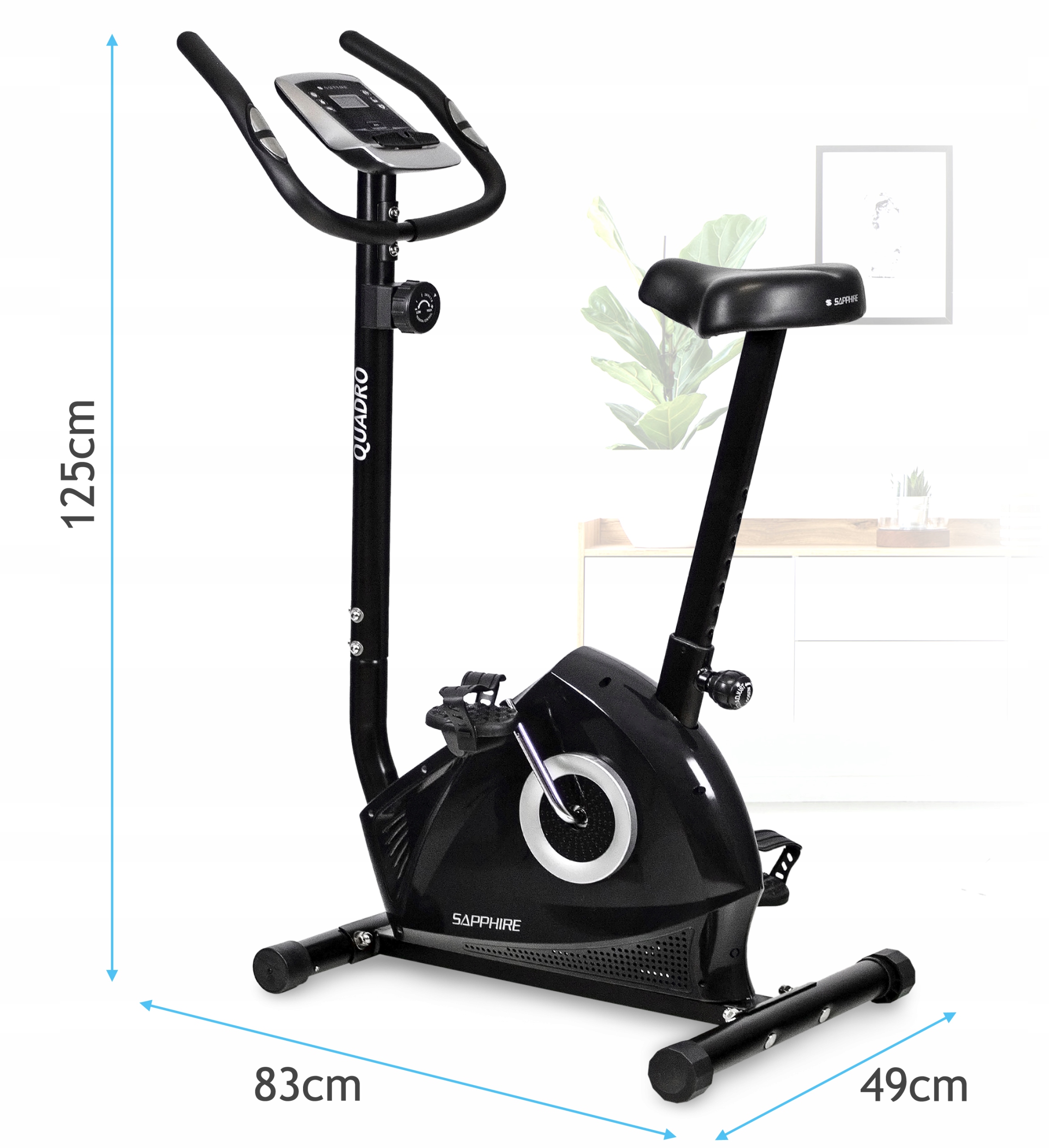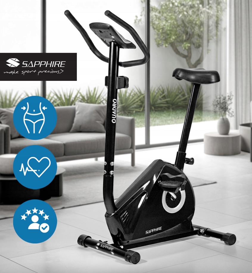 Dzięki rowerowi stacjonarnemu Sapphire QUADRO poprawisz kondycję, spalisz kalorie i wzmocnisz mięśnie – wszystko w zaciszu własnego domu. Ćwicz wygodnie, niezależnie od pogody i pory dnia!