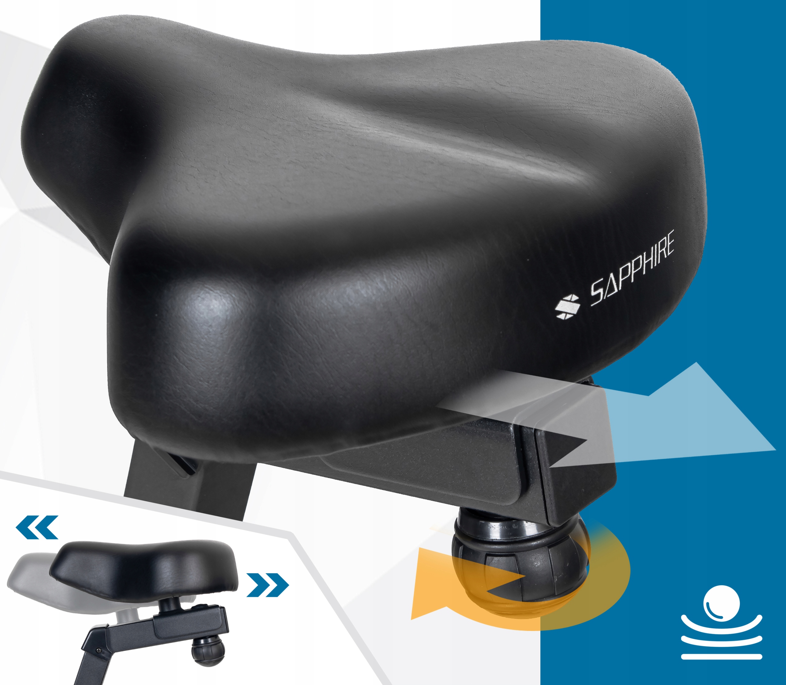 - Jednym z podstawowych czynników mających wpływ na komfort ćwiczenia na rowerze treningowym jest jakość zamontowanego w nim siodełka. W naszym modelu do produkcji siodełka zastosowano najtrwalsze materiały, które zapewniają wygodny trening nawet podczas najbardziej wyczerpujących sesji.