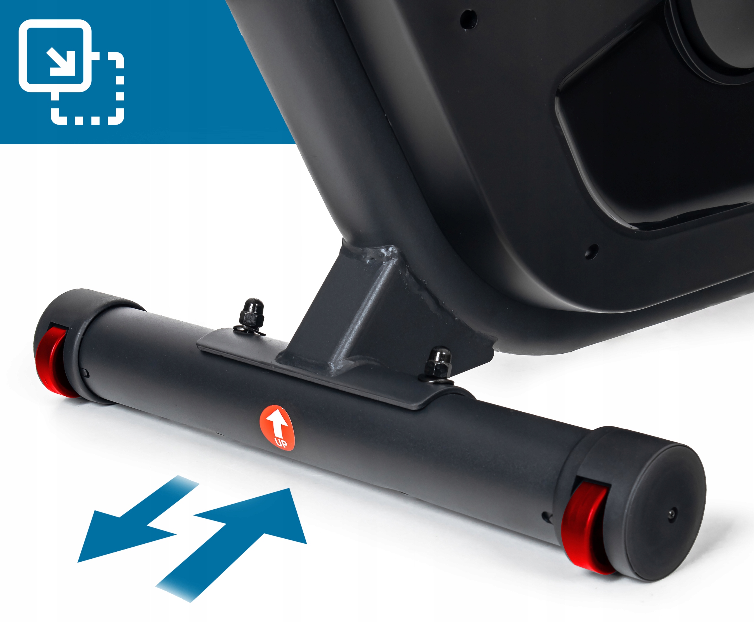 - Dzięki dużej wadze urządzenie jest stabilne i bezpieczne nawet podczas najbardziej wymagających treningów. Zdajemy sobie jednak sprawę, że czasem będą Państwo chcieli przemieścić sprzęt - niezwykłym udogodnieniem będą wówczas rolki transportowe wbudowane w przedni stabilizator.