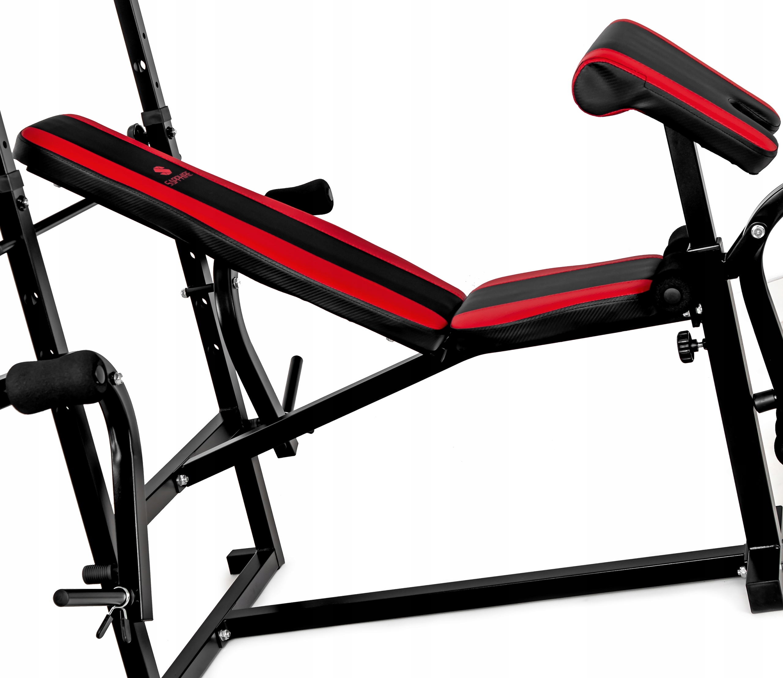 - Maksymalne obciążenie ławki: 220 kg, stojaków 170 kg, na prasę do nóg 40kg