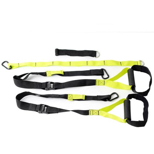 Taśmy do treningu MULTI TRAINER to uniwersalny zestaw taśm do ćwiczeń w podwieszeniu, podczas których wykorzystuje się ciężar własnego ciała. Zestaw zastępuje wiele innych, drogich przyrządów do ćwiczeń, dając jednocześnie porównywalne efekty. Pasy są bardzo wytrzymałe i wyposażone w wygodne uchwyty na ręce lub stopy, dzięki którym trening jest bezpieczny i wygodny.