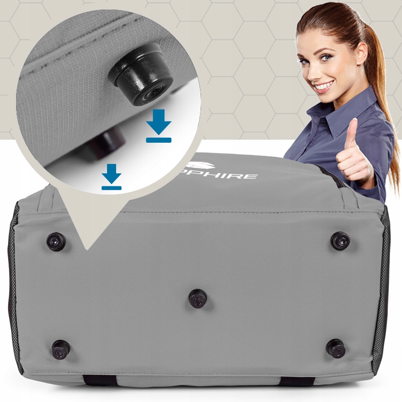 - Torby ST-172 posiadają pięć trwałych nóżek na spodzie - rozwiązanie to pozwala w sposób skuteczny oddzielić bagaż od powierzchni, na której się znajduje chroniąc go tym samy przed zabrudzeniem i wilgocią.